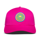 Ride the wave of nostalgia with the Tuck Life 80's Sun Wave Hydro Waterproof Trucker Hat. This iconic trucker hat design brings back the vibrant style of the '80s while delivering modern water-resistant performance and functionality. Comes with moisture-wicking interior lining. Whether you're hitting the beach, out on the boat, embarking on outdoor adventures, or simply looking for style, this hat has got you covered.