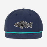 Tuck Life's Fish Bass Rope Hat. This iconic rope hat design brings back the style of the '80s while delivering modern water-resistant performance and functionality. Comes with double braided rope across the visor and moisture-wicking interior lining. Whether you're hitting the beach, out on the boat, embarking on outdoor adventures, or simply looking for style, this hat has got you covered.