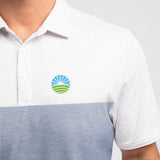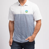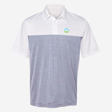 Tuck Life performance polo. Heathered indigo light Navy/White, moisture-wicking and quick drying.