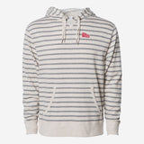 It is the perfect midweight sweatshirt for all occasions. Warm body with contrast french terry interior. Finger hole on cuffs. Media pocket and eyelet in front pocket. It's topped off with antique nickel drawcord tips and eyelets. Features 1x1 ribbing at cuffs and waistband.