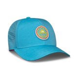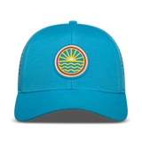 Ride the wave of nostalgia with the Tuck Life 80's Sun Wave Hydro Waterproof Trucker Hat. This iconic trucker hat design brings back the vibrant style of the '80s while delivering modern water-resistant performance and functionality. Comes with moisture-wicking interior lining. Whether you're hitting the beach, out on the boat, embarking on outdoor adventures, or simply looking for style, this hat has got you covered.
